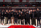 公牛队昨天为罗斯举行了1号球衣退役仪式,这张大合影中的球员你都能叫出名字吗?