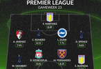 著名统计网站WhoScored公布了本轮英超最佳阵容,热刺维拉各有三将入选,索博、佩德罗在列。