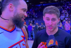 赛后采访,吉莱斯皮打断了狄龙的场边采访,同时道:“现在告诉所有人,我们队里有两个全明星。这个家伙是全明星——把你们手机都掏出来,开始投吧。”