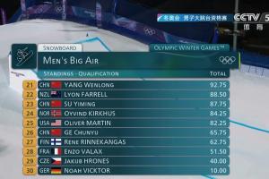 体育资讯02月06日讯 米兰冬奥会单板滑雪男子大跳台预赛三轮全部结束,卫冕冠军苏翊鸣以第4名晋级决赛。葛春宇、杨文龙遗憾无缘决赛。