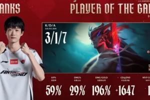 体育资讯2月6日讯 Shanks永恩打出3/1/7战绩,斩获AL对阵BLG第二局MVP。