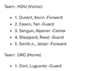 火箭vs雷霆 首发: