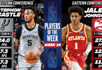 直播吧2月10日讯 今日NBA官方宣布,马刺后卫斯蒂芬·卡斯尔和老鹰前锋杰伦·约翰逊分别被评本赛季第16周西部和东部周最佳球员。